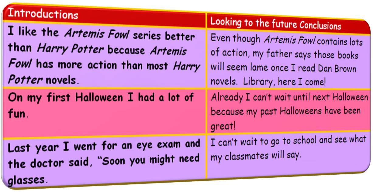 Or suppose the student is writing about different kinds of stars. She could end by mentioning future research or discoveries to be made in the field of astronomy, or a recent discovery and how exciting that is for her.